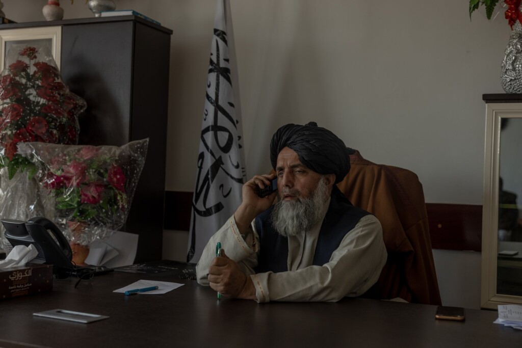 Mullah Abdullah Sarhadi talks on the phone in his office in Bamyan, Afghanistan, Feb. 7, 2022. Sarahadi has been a member of the Taliban since the 90ies. He was in charge of military operations in Bamyan and effectively in charge of the region when the world-famous Buddhas were blown up by the Taliban. He later served four years in Guantanamo. Now he is governor of the province.