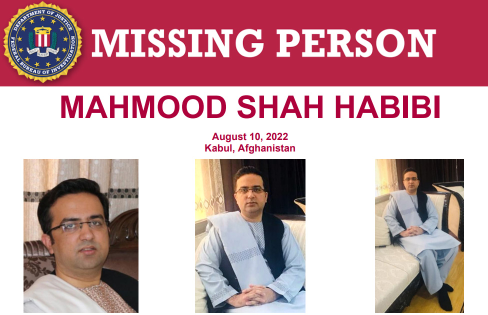اداره تحقیقات فدرال امریکا (اف‌بی‌آی) در واشنگتن اعلام کرده است که برای اطلاعاتی که منجر به یافتن و بازگرداندن محمودشاه حبیبی، شهروند افغان-امریکایی و رییس پیشین اداره هوانوردی ملکی افغانستان شود، تا پنج میلیون دالر جایزه پرداخت خواهد شد.
