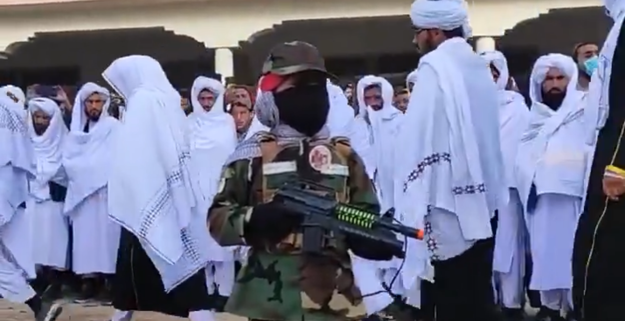 در تصویری که از این مراسم منتشر شده، کودکی با لباس نظامی و سلاح در دست، در میان جمعی از افراد بزرگسال دیده می‌شود؛ صحنه‌ای که به‌جای نماد آموزش، علم و رشد فکری، یادآور نظامی‌سازی آموزش دینی و عادی‌سازی خشونت در ذهن کودکان است. این تصویر تنها یک قاب ساده نیست، بلکه بازتاب سیاستی گسترده‌تر است که طالبان طی سال‌های اخیر دنبال کرده‌اند: پیوند دادن آموزش مذهبی با ایدئولوژی جنگ و اطاعت مطلق.
