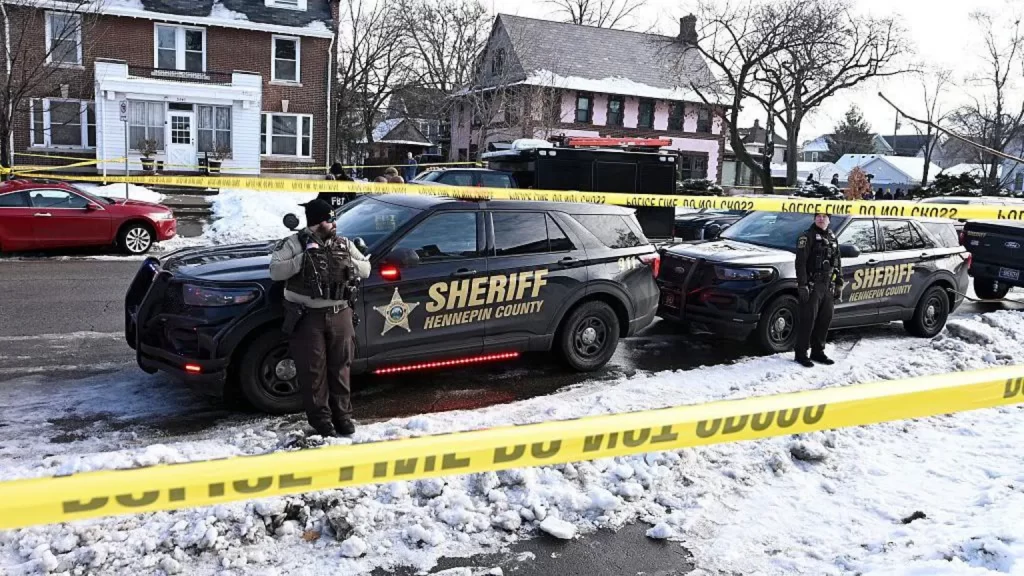 Law enforcement surrounds the area where an ICE agent fatally shot a woman in Minneapolis