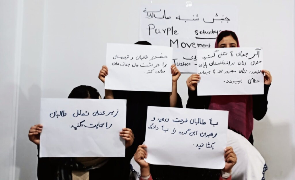 جنبش شنبه‌های ارغوانی از ادامه تعامل ایالات متحده با طالبان انتقاد کرده و آن را به منزله‌ی شراکت در جنایات ضدبشری این گروه خوانده است.