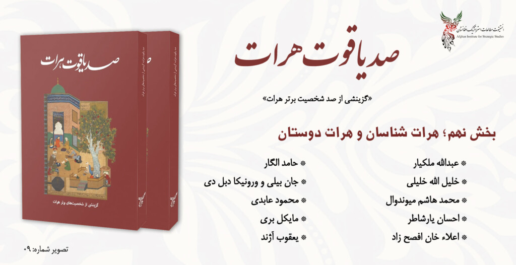 انستیتوت مطالعات استراتژیک افغانستان با نشر کتابی زیر عنوان «صد یاقوت هرات»، به معرفی صد تن از شخصیتهای برجسته فرهنگی، هنری، علمی، سیاسی، نظامی و اجتماعی هرات پرداخته است.