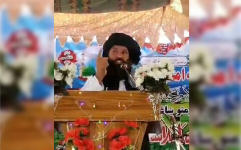 یک عضو گروه طالبان در محفل فراغت شاگردان یک مدرسه دینی در ولایت خوست، در