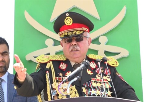 مارشال عبدالرشید دوستم، رهبر جنبش اسلامی افغانستان، در مراسم فاتحهخوانی جنرال اکرامالدین سریع، فرمانده پیشین